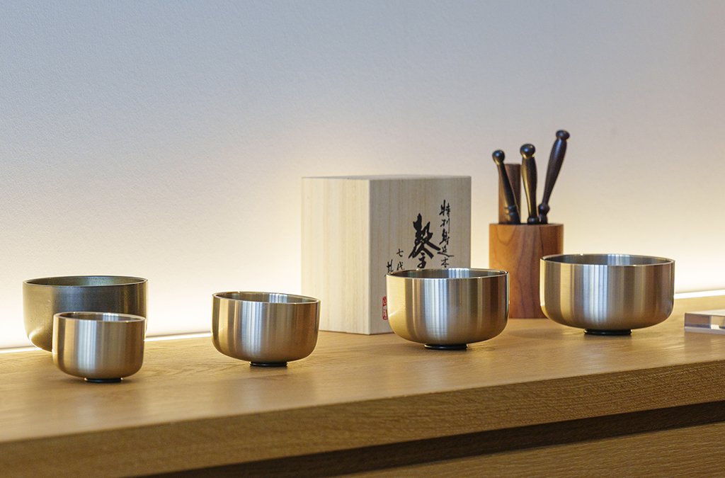 通常、佐波理の錫の含有率は15~20%といわれますが、「南條工房」は錫の量を増やした独自の配合でつくります。これは「南條工房」の先々代にあたる5代目が研究を重ねて生み出した配合率。錫を多くして硬さをアップさせることが、理想の音色に不可欠だそうです。