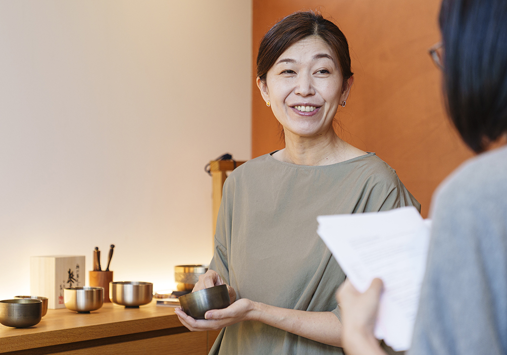 「人生において、おりんを買う機会は何度もあることではないと思います。だからこそ、まずは私たちが大切にしている音の良さを知ってほしい。そしていつか「おりん」が必要になった時、自分にとって心地の良い音を探しにきてほしいです」と7代目の妻でもある南條由希子さんは語ります。