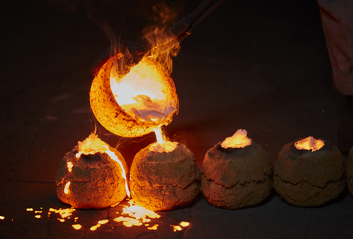 それでも、型の温度、錫と銅の溶け具合、佐波理の流し込みや型から外すタイミング…こうしたことがすべて音の質に関わるため気が抜けません。