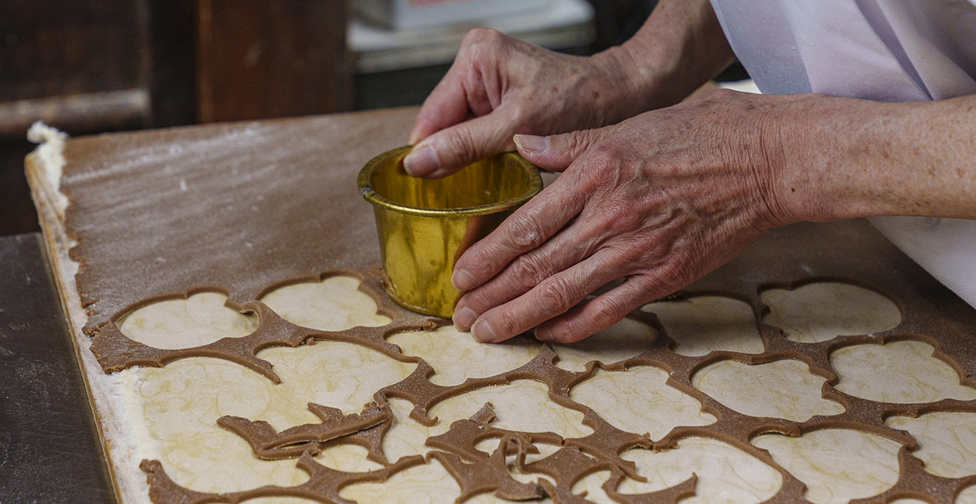 取材に伺った時期は、ちょうどクリスマス向けクッキーの繁忙期。絶えず手を動かす人々の姿は、まさに「職人」でした。熟練の手仕事が生み出す「藤田製菓」のクッキー。京都みやげやギフト、日常のおやつにもぜひどうぞ。