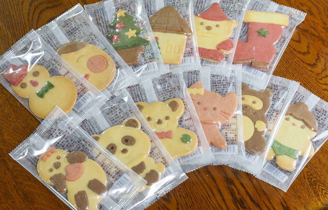 焼きあがったクッキーは、輸送中の割れや湿気を防ぐため、シュリンク包装で密閉してから外装に入れるという徹底ぶりです。
