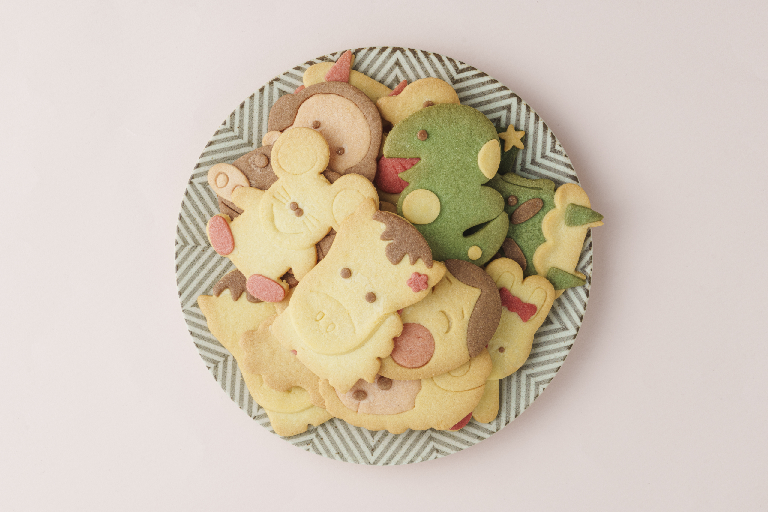犬やねこといった動物から、節分やハロウィンなどの行事モチーフまで、これまでにつくられた絵柄は100種以上。新しいデザインを考える際は、スタッフみんなで意見を出し合って試作を重ね、どこか懐かしい「藤田製菓」ならではのかわいらしさを追求しています。