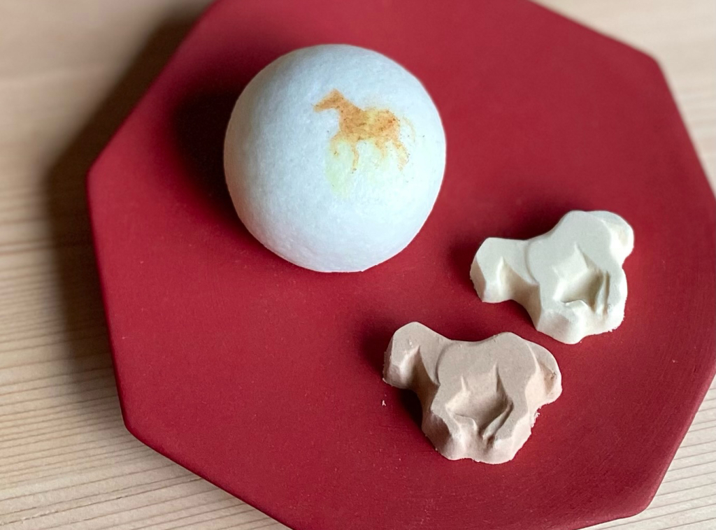 12月下旬頃からは、午年をモチーフにした上用饅頭や、前足をあげる躍動的な馬の姿をとらえた干菓子など、新春に味わいたい京菓子が揃います。