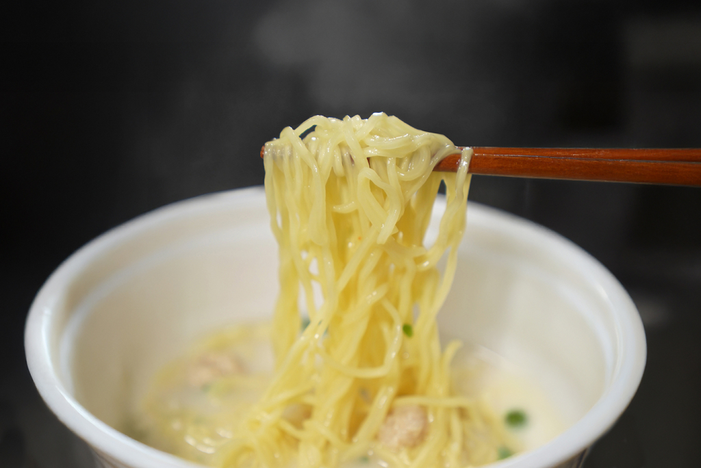 「ゆでたての旨さ」を追求したノンフライの中細麺は、もちもちとした弾力が魅力。スープの旨味としっかり絡み、最後のひと口までのど越し良く楽しめます。